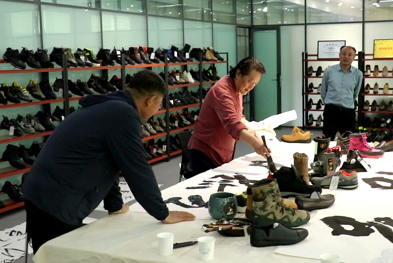 活動(dòng)現(xiàn)場氣氛活躍,書法家們潑墨揮毫,筆底生花,一幅幅行云流水的書法作品、一張張情趣盎然的寫意畫躍然紙上,通過書法作品展現(xiàn)百華鞋業(yè)風(fēng)采 ,讓企業(yè)職工零距離感受到中國傳統(tǒng)文化的無窮魅力。藝術(shù)家鋪紙展卷,潑墨暈染,筆走龍蛇,激情飛揚(yáng),書法家們將中國優(yōu)秀傳統(tǒng)與 百華鞋業(yè)企業(yè)文化互相融合。
